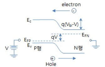 cf) forward-bias 에너지밴드 그림( Vbi가 낮아진다.) 전위는 P가 높다.