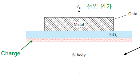 ; 그러면 산화막 아래도 (+)로 대전될 것이고, 그 밑에는 (-), 즉 전자가 모인다.