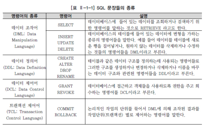 - 첫이름 : SEQUEL(Structured English QUEry Language)