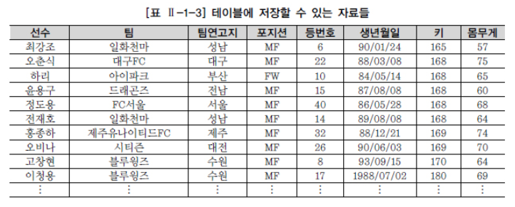 -> 엑셀로 데이터를 저장한 것이라 생각하자.
