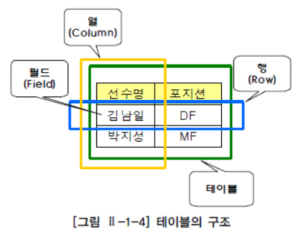 => 테이블 안의 데이터를 드래그해서 블록설정 했을 때, 그 부분을 필드 라고 생각하면 된다.