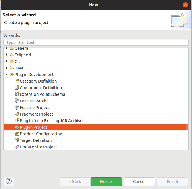 방법 : menu entry에서 File > New > Other > Plug-in Development > Plug-in Project 선택
