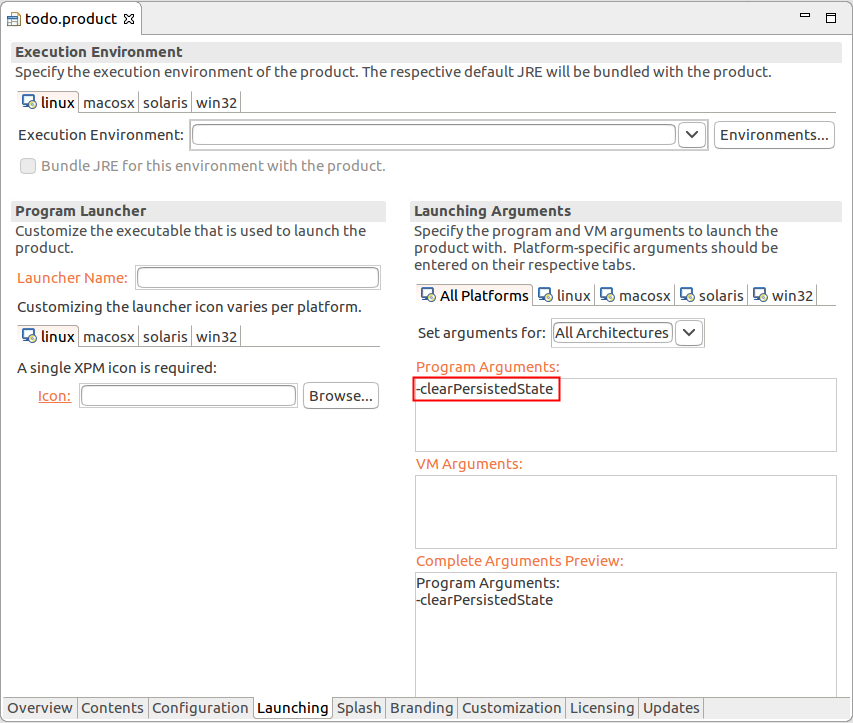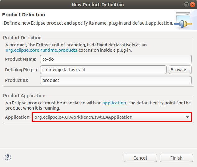 name을 todo.product로 설정하여, com.vogella.tasks.product 폴더 안에 product configuration 파일을 만드세요.