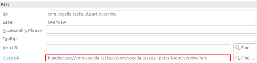 application plug-in안에 com.vogella.tasks.ui.parts 패키지를 만드세요