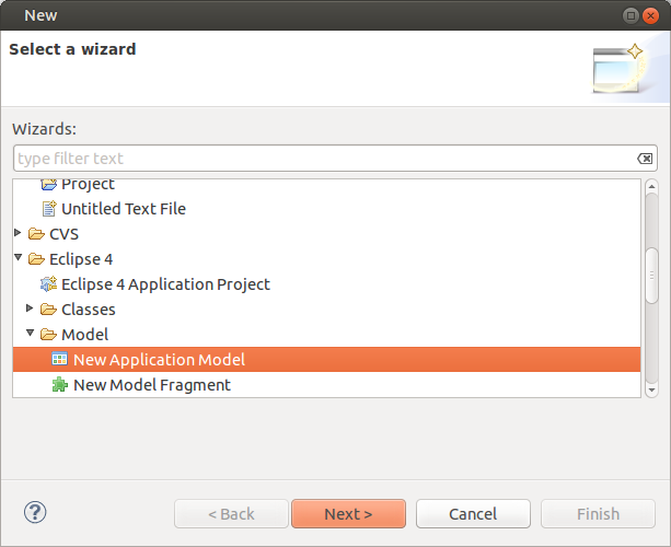 방법 : menu > File > New > Other… > Eclipse 4 > Model > New Application Model