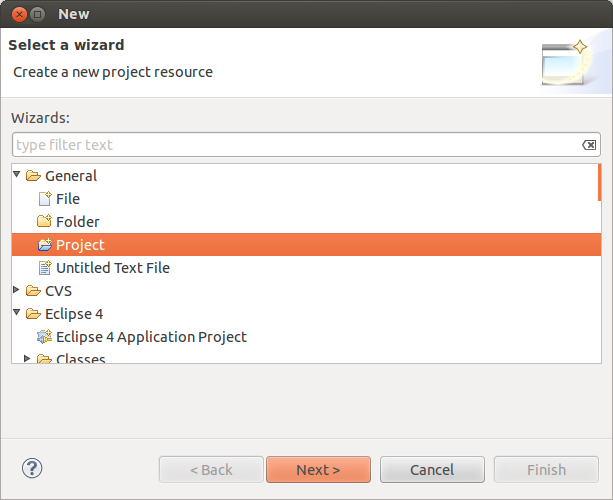 menu entry에서 > File > New > Other…> General > Project