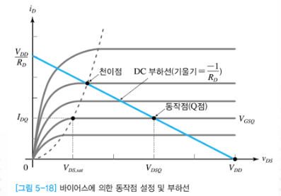 ; MOSFET포화 영역의 경계(Vds=Vgs-Vtn) 포물선과 부하선의 교점