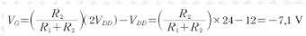 VG는 R1,R2의 전압분배로, 이 관계를 이용하면 R1,R2를 VG와 연관지을 수 있다.