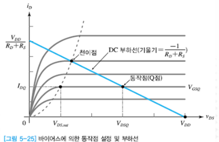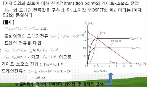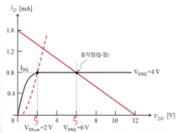 ; MOSFET포화 영역의 경계(Vds=Vgs-Vtn) 포물선과 부하선의 교점