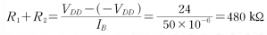 VG는 R1,R2의 전압분배로, 이 관계를 이용하면 R1,R2를 VG와 연관지을 수 있다.