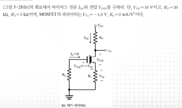 => VGS는 전압분배, ID는 공식, VDS는 KVL로 구하고