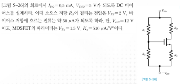 바이어스 저항(R1,R2,RD,RS)에 흐르는 전류가 50uA이므로,