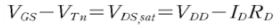 1.3.1.2 이때, VDS = VGS-Vtn이고, KVL을 적용하면 VDD-IDRD이다.
