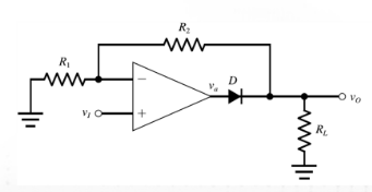 ; 입력단자를 바꿈.(반전증폭기) + 다이오드 귀환 추가.