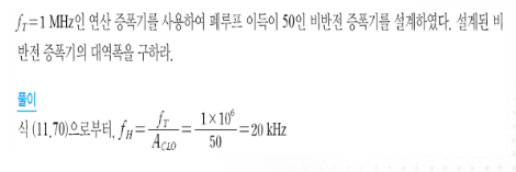 대역폭은 fH = fT/Aclo가 된다.