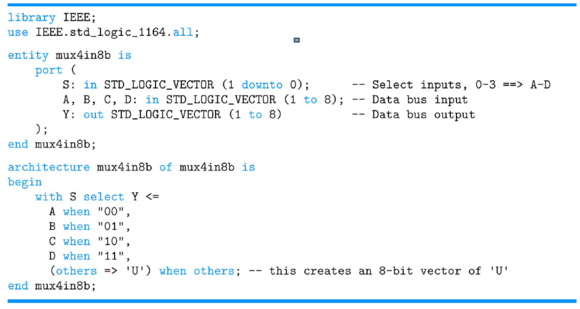 Behavioral VHDL program for 4-input, 8-bit multiplexer