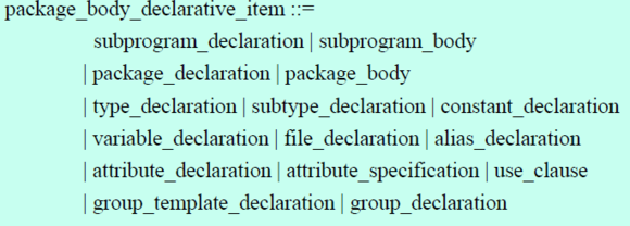 ex)엔티티 선언, 아키텍처 본체, 구성선언, 패키지 본체 등..