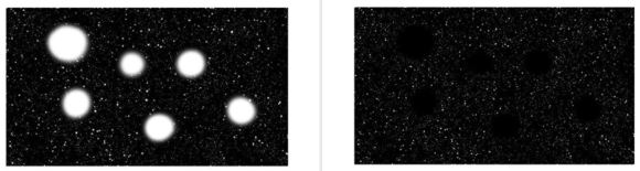 특정 Threshold(예를 들어 반지름)을 설정한뒤 적용하면, 오른쪽과 같이 흰부분을 제거하여 검은색으로 만들 수 있다.