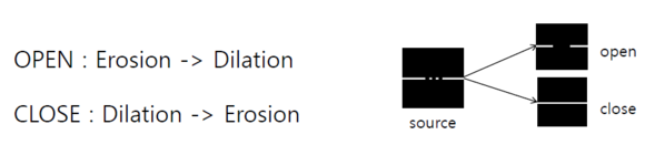 그래서 Open은 침식 -> 복원, Close는 확대 -> 복원 이된다.