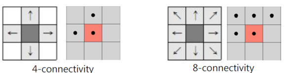 - 8 connectivity: 상하좌우 + 대각선
