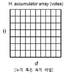 1. 투표 배열(Hough space)의 모든 값을 0으로 초기화한다.