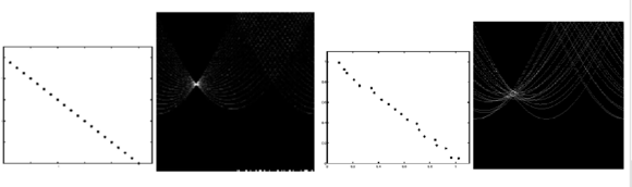 여기서 직선 여러 점을 a-b평면으로 옮기면 여러 직선이 나오고, 모든 직선이 지나는 교점은 x-y평면으로 옮기면 인 직선으로 다시 변환된다.